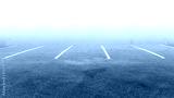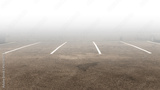 Painted parking lot car park and fog, bays shot. Empty parking lot.