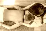 Young woman getting back massage lying on table. Spa, health and relaxation concept