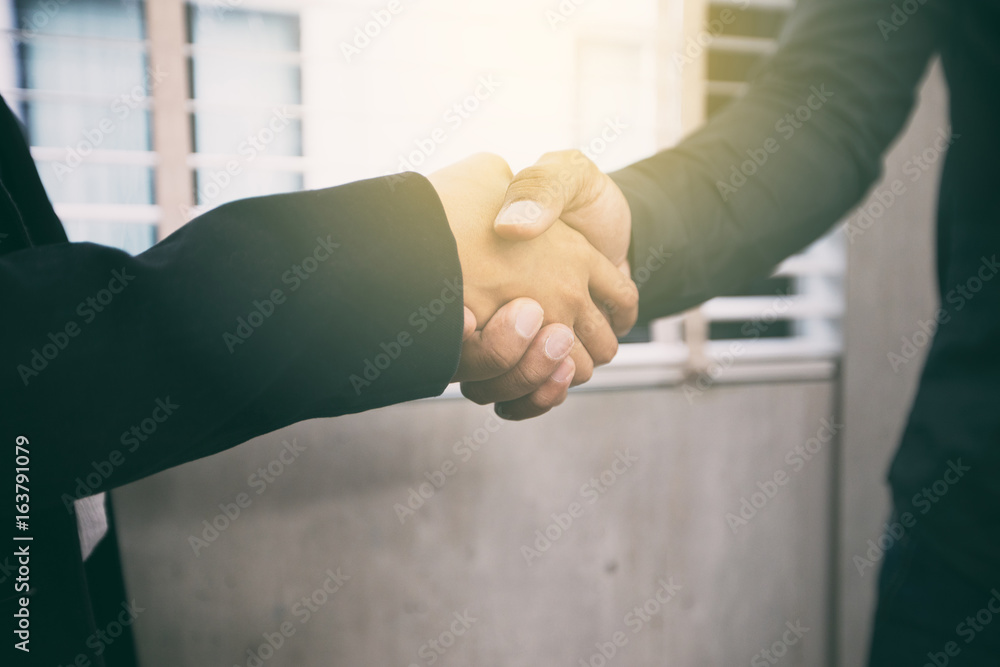 Two Business handshake their agreement to sign contract ,soft focus and blurry