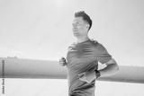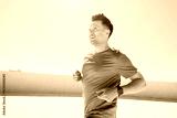 Joyful jogger enjoys energetic run on a bright sunny day, embracing fitness with a smile in an urban setting