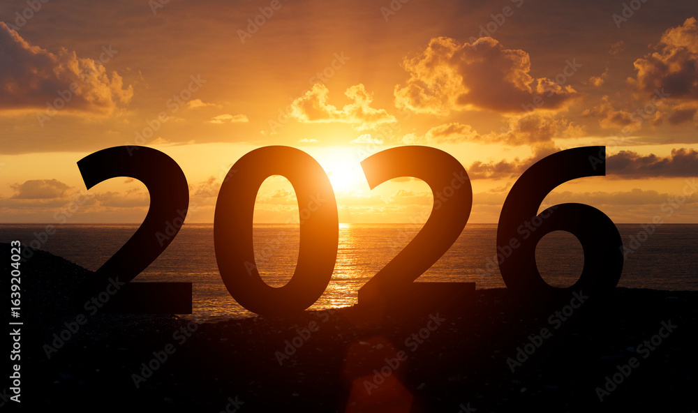Silhouette of 2026 at Sunset. New Year and Future Plans