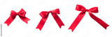 Red bow ribbon band satin fabric knot tied (PNG isolated on transparent background) for Holiday banner design, greeting card and Christmas gift decoration