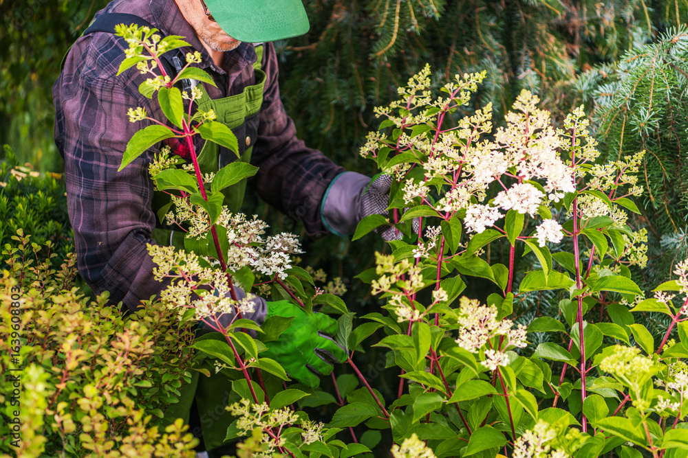 Gardener Tending to Blooming Flowers in a Lush Green Garden During Springtime
