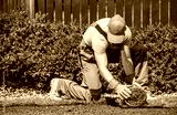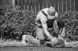 Landscaper Installs New Sod in a Residential Garden During Daylight Hours