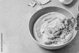 Healthy white bean hummus for snack. Healthy eating. Vegetarian snack. Copy space