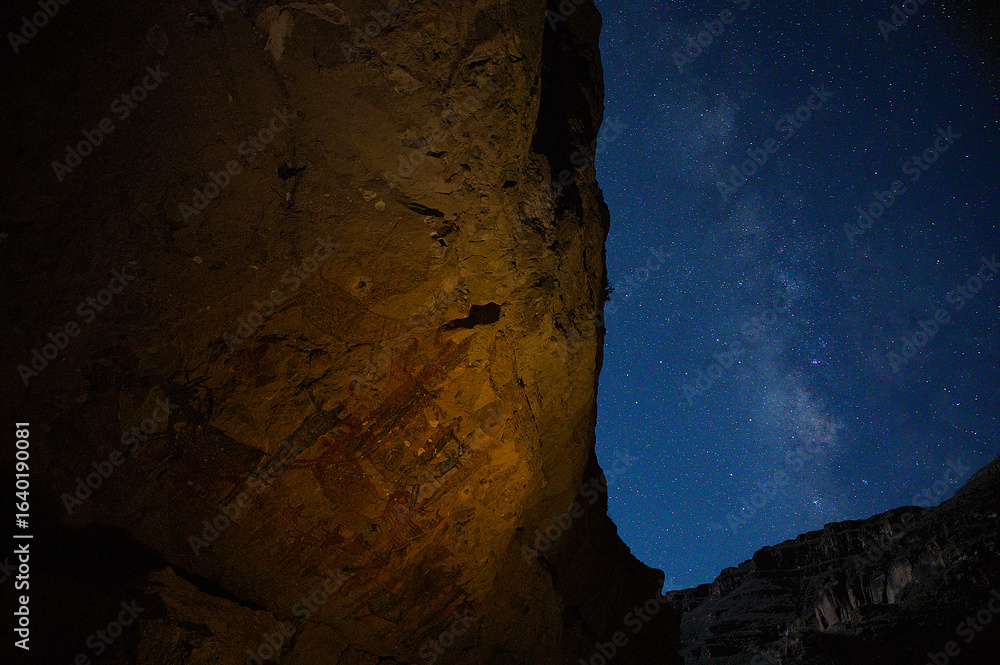cueva la pintada con cielo estrellado, pinturas rupestres en baja california sur