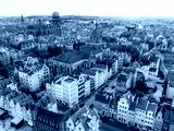 Gdansk with Motlawa river in Poland. Aerial landscape of the Main Town. Old town colourful house with saint Marys church