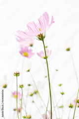 Vertical pink cosmos flower with white and pink flowers in soft light background
