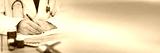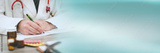 Doctor taking notes; panoramic banner