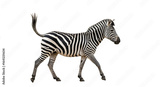 Zebra walking isolated on white background, african wildlife animal, black and white stripes, mammal image