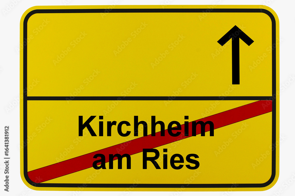 Illustration eines Ortsausgangsschildes von Kirchheim am Ries in Baden-Württemberg