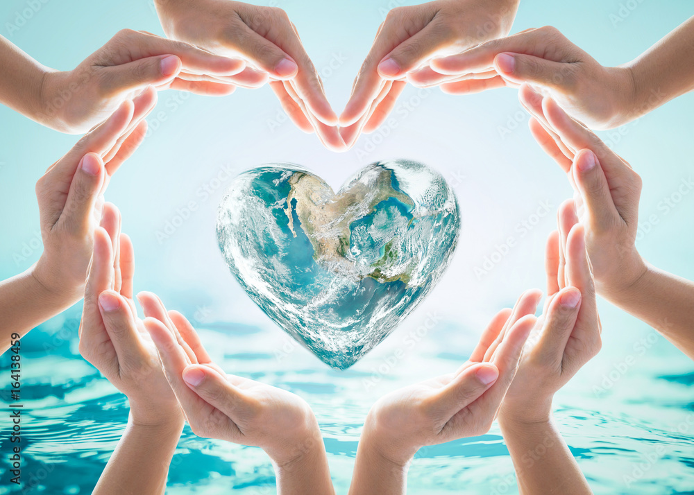 World heart day and environmental protection concept with love earth in community volunteer's hands. Element of this image furnished by NASA
