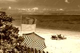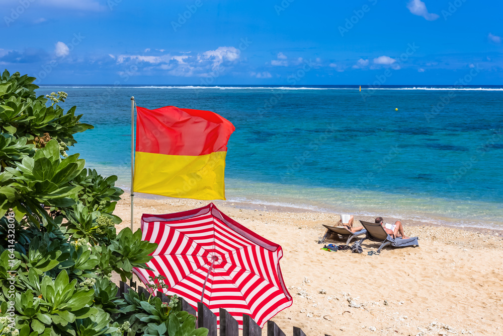 Drapeau de plage surveillée et parasol, la Saline, île de la Réunion