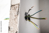 New electric cables coming out of wall during house construction and renovation
