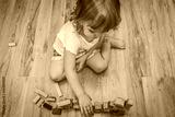 Girl playing with building blocks on floor