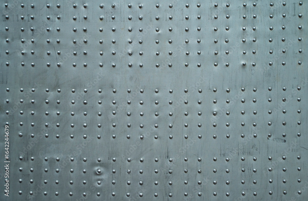 Abstract metal background. Old weathered silver metallic background. Vintage metal texture with rivets and bolts. Sheathing old plane. Old metal texture. High quality photo