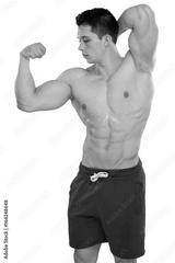 Bodybuilder Bodybuilding Bizeps anspannen posen Muskeln Mann stark muskulös jung Freisteller