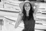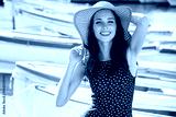 Portrait of a beautiful woman in a straw hat. Laughing girl. Summer time