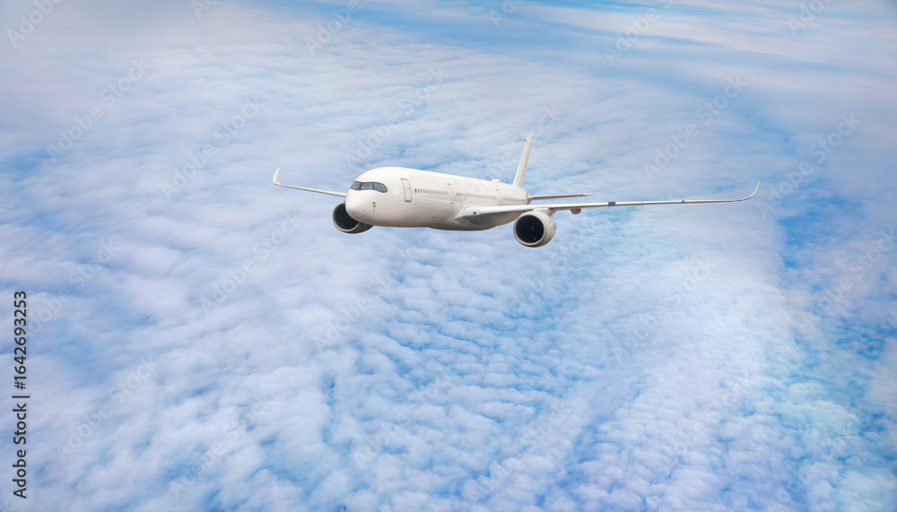 White passenger airplane flying in the sky amazing clouds in the background - Travel by air transport