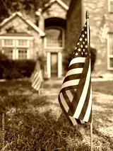 American flags displayed in front of a southern home in honor of the fourth of July. Patriotism concept.
