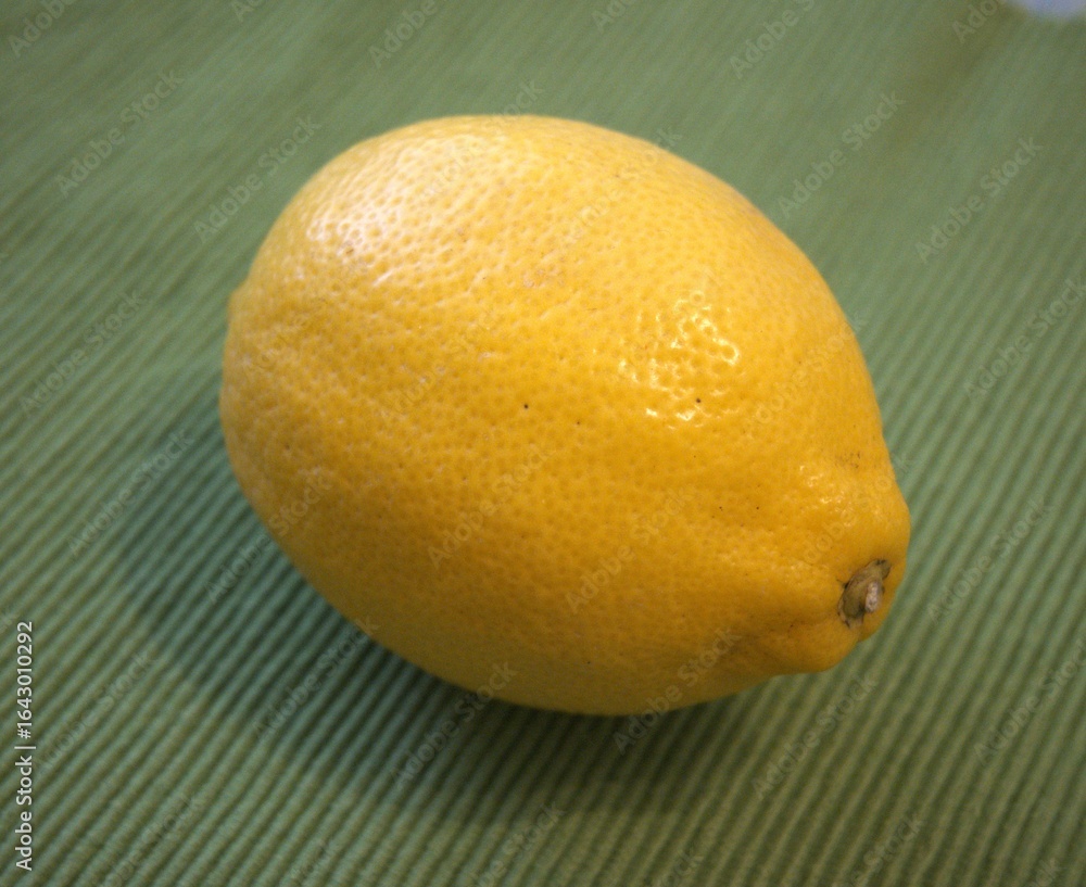 single whole lemon placed on a green background. Close-up shot with plenty of copy space for text or design.