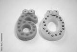 A colorful number 60 birthday candle standing upright on a clean white background. Close-up image with copy space for celebration themes.