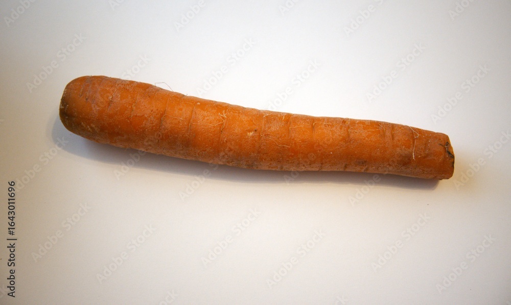 A single unpeeled raw carrot placed on a white background. Close-up image ideal for food or health-related content.