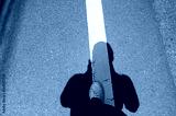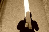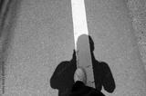 Shadow of person standing over white road line