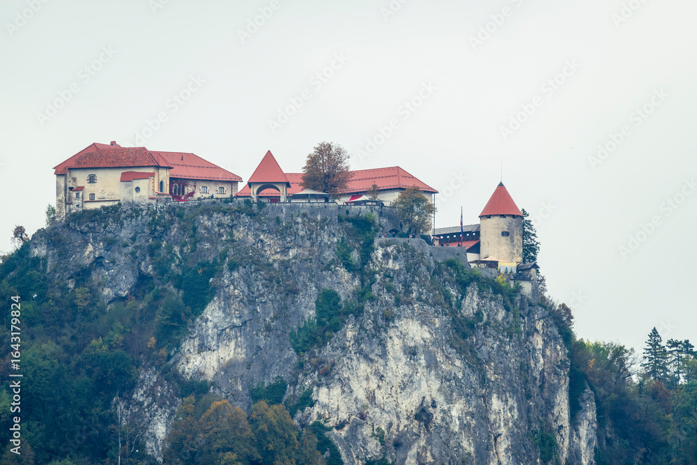 The magical atmosphere of Lake Bled in autumn. Among boats and mystical charm. Slovenia