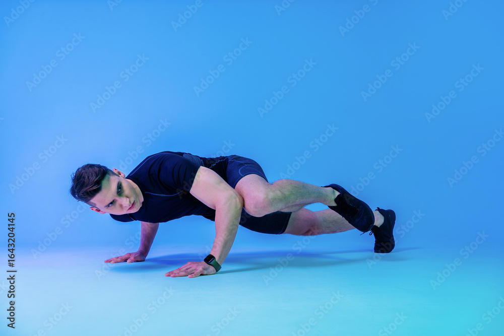 Athletic man with fit muscular body training in studio, concept about sport, functional workout and healthy lifestyle