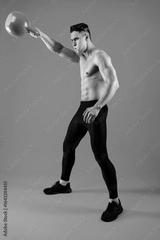 Athletic man with fit muscular body training in studio, concept about sport, functional workout and healthy lifestyle