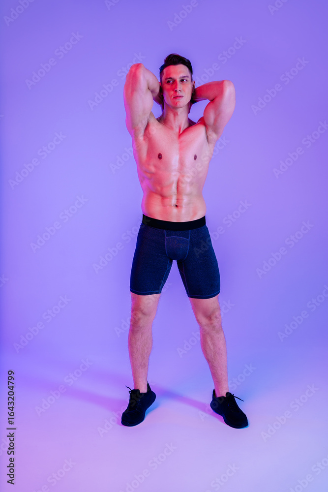 Athletic man with fit muscular body training in studio, concept about sport, functional workout and healthy lifestyle