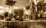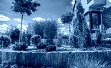 Lush Garden Landscape With Vibrant Greenery Near Contemporary Home