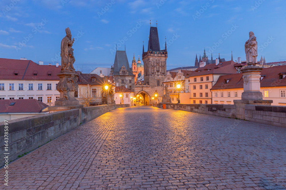 Charles Bridge at dawn, Prague, Czech Republic
