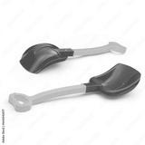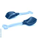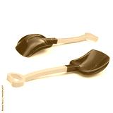 A red plastic toy shovel or shovel on a white background.