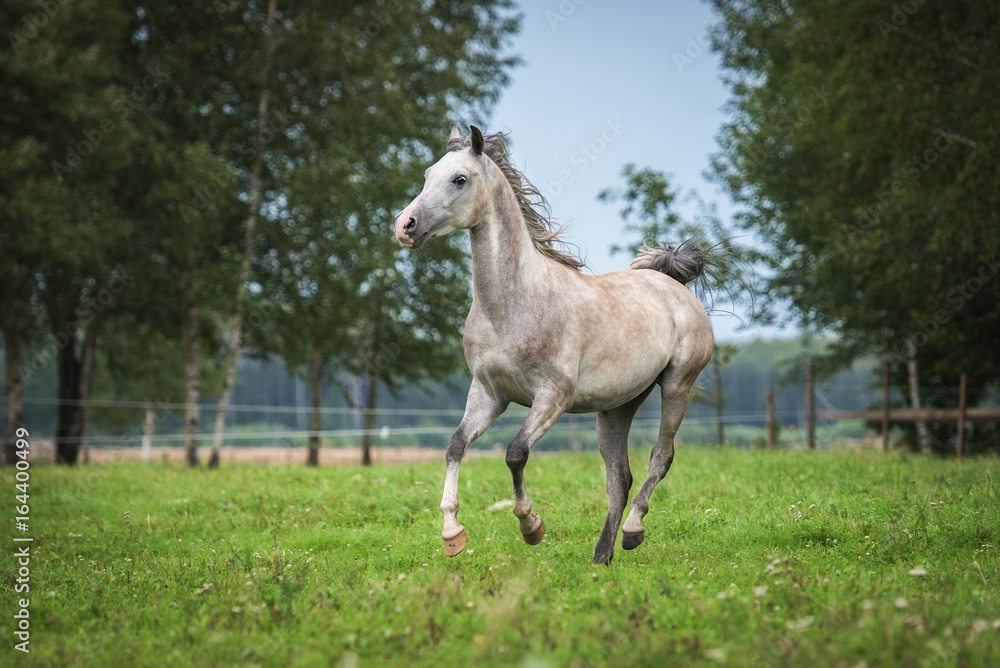 Arabian horse running on the pasture