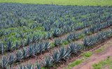 Mexican Blue Agave cultivation field in Jalisco, Mexico. "Agave tequilana" is a succulent plant, which is the main raw material for making tequila.