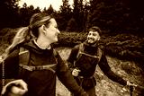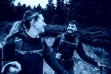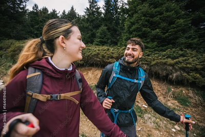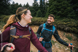 Hiking Couple with Full Gear in Stunning Mountain Landscape