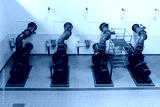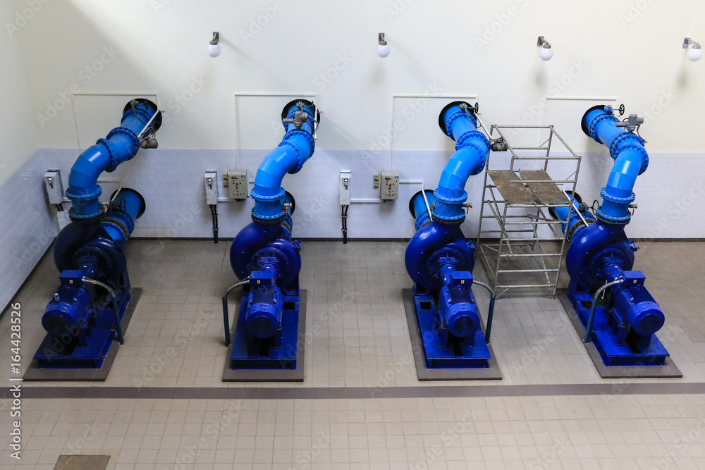 Four blue pipelines carrying water to household taps