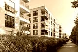 Cityscape of a residential area with modern apartment buildings, new green urban landscape in the city