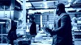 Black master engineer overseeing photovoltaics production line in a factory, ensuring a successful manufacturing process to meet corporate goals and alternative energy standards. Camera A.