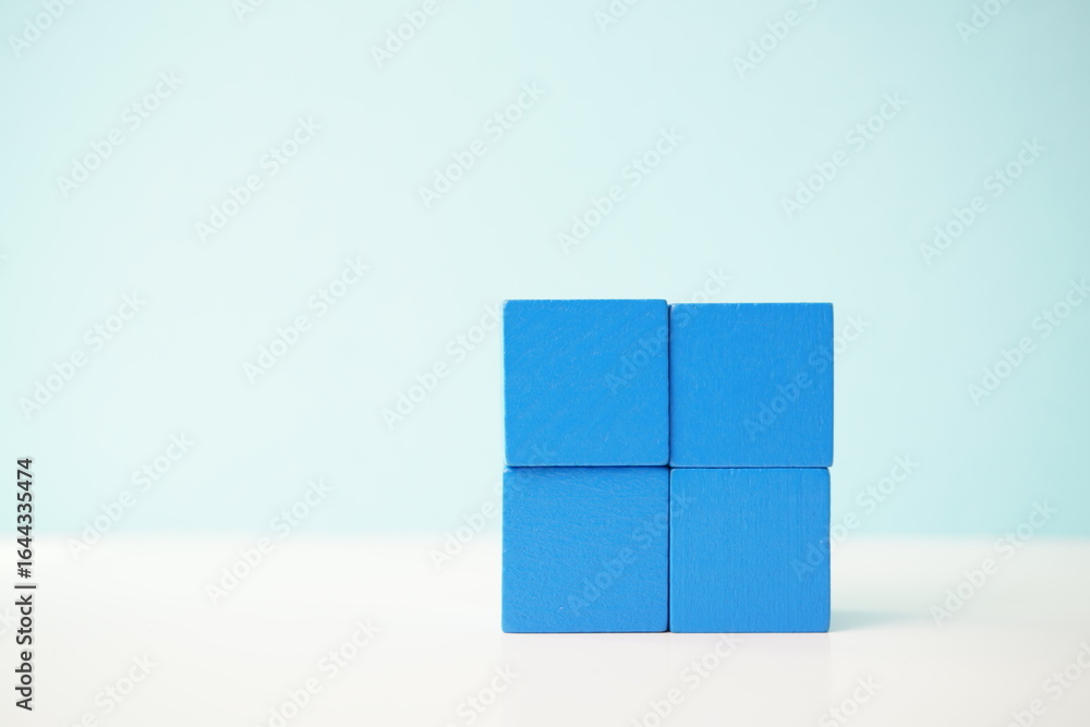 Blue wooden blocks stacked together, representing creativity and structure, versatile wooden cubes on clean background for business, health and education concepts.