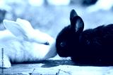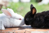 Two fluffy black white rabbits. Easter bunny concept. close-up, shallow depth of field, selective focus