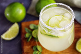 Delicious margarita cocktail on wooden board