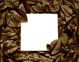 Creative layout made of leaves with paper card note. Flat lay. Nature concept