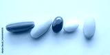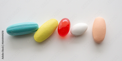 Colorful medicine pills tablet on white background