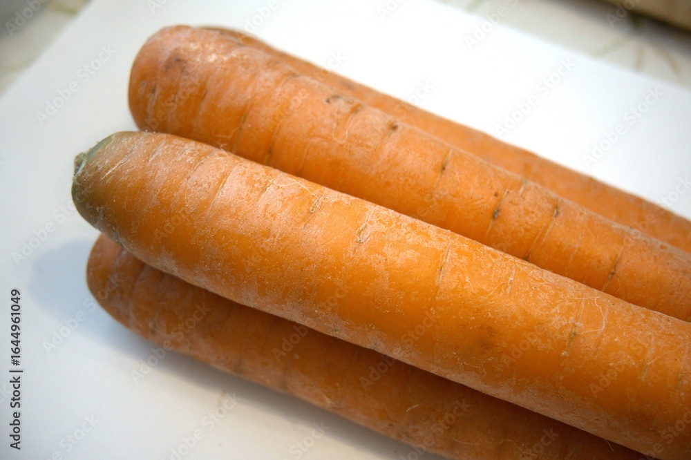 Close-up of fresh orange carrots arranged on a plain white background with copy space, ideal for healthy food or vegetarian concepts.