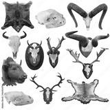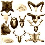 collection of isolated hunting trophies