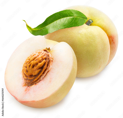 Snow White Peach isolated on white background, Fresh White Peach on White Background With clipping path, High resolution photography.