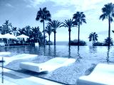 Luxurious Infinity Pool with loungers surrounded by palms and ocean view